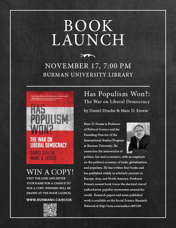 News & Events > Events > Froese Book Launch Date November 17, 2022 Time 7:00 pm Location Library Froese Book Launch